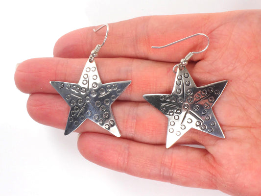 Vintage Large Sterling Silver Starfish Earrings: Mexico