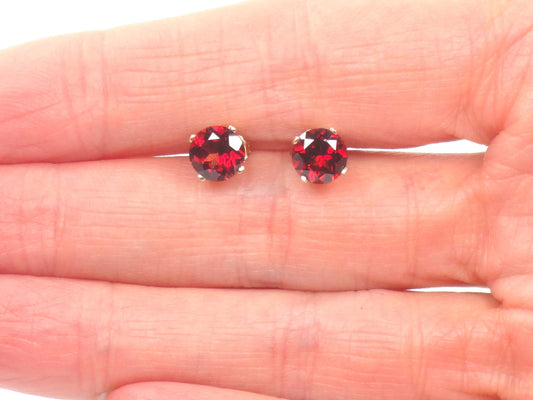 Vintage 14k Gold Garnet Stud Earrings: January Birthstone 6.1 mm