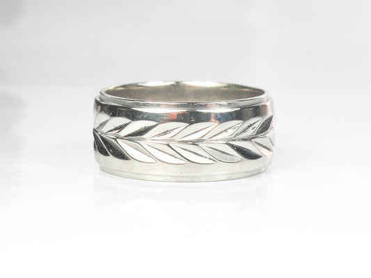 Vintage Sterling Silver Wide Floral Band 8 mm Silver Wedding Ring Size 7