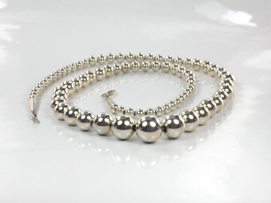 Vintage Sterling Silver Graduated Bead Necklace, 21.25"