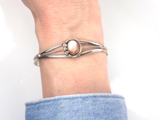 Vintage Small Sterling Silver Pink Mother of Pearl Cuff Bracelet