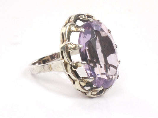 Vintage 800 Silver Amethyst Ring - Oval Cut, Size 4.75 - 1960s