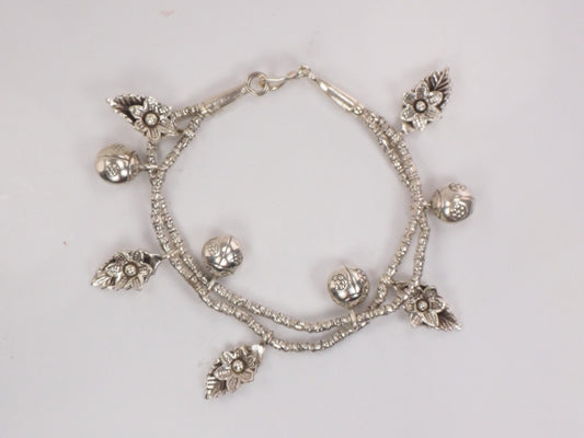 Sterling Silver Ladybug and Flower Charm Bracelet Flexible 7"