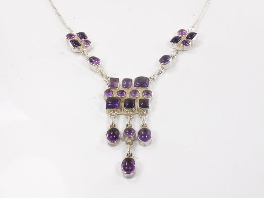 Vintage Sterling Silver Amethyst Bib Necklace: Modernist Dangle Design