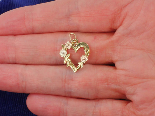Vintage 14k Tri-Color Gold Floral Open Heart Pendant Charm