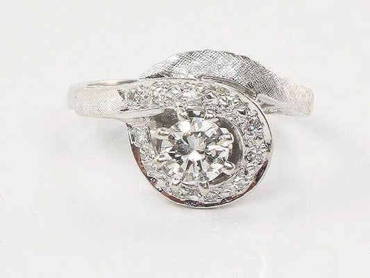 Vintage 14k White Gold Diamond Engagement Ring: Mid-Century Swirl, Size 5.5