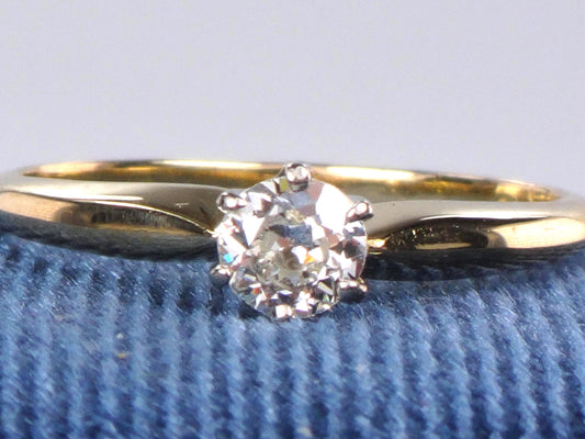 Vintage 18k Yellow Gold Diamond Engagement Ring: .35 Carat Old European Cut, Size 7