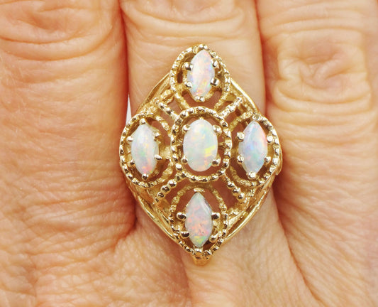 Vintage 14k Yellow Gold Natural Opal Cluster Ring October Birthstone Size 6