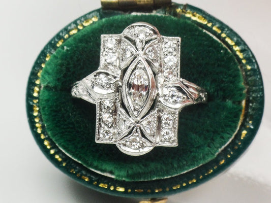 Vintage Platinum Marquise Natural Diamond Cocktail Ring Art Deco 1930's Panel Ring Size 7
