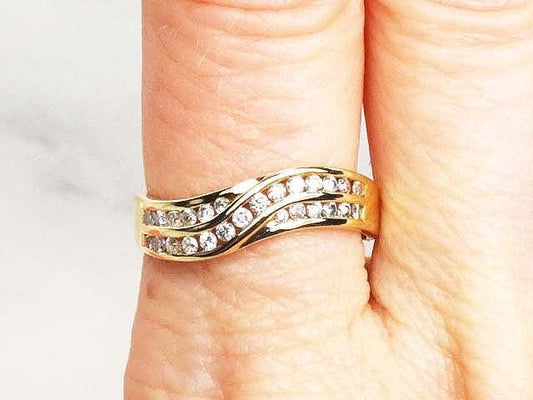 Vintage Diamond Twist Ring: 14k Yellow Gold Wave Style, Size 7.25