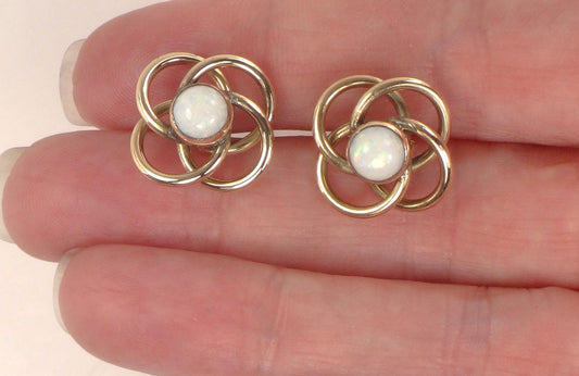 Vintage 14k Gold Opal Love Knot Earrings: Large Yellow Gold Studs