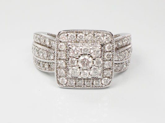10k White Gold Natural Diamond Cluster Engagement Ring Approximately 1 Carat TDW