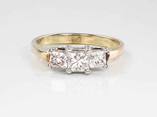 Vintage 14k Gold Three Stone Diamond Engagement Ring, Princess Cut Diamond Ring, Size 7