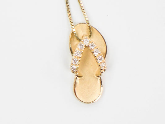 Na Hoku Hawaiin 14k Gold and Diamond Slipper Pendant Necklace, Yellow Gold Flip-Flop Sandal Charm 16", Pre-Owned