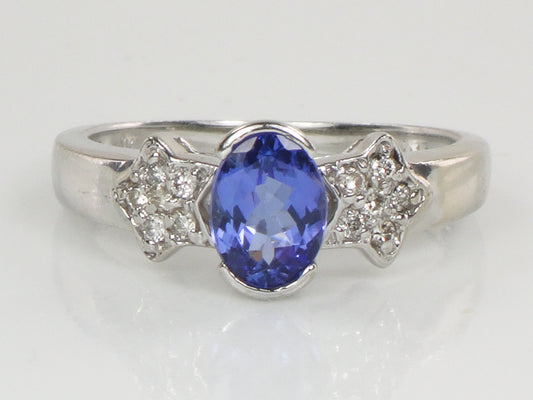 Le Vian 14k White Gold Oval Tanzanite and Pave Diamond Stars Ring (Estate), Size 8