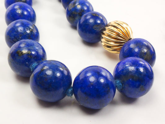 Vintage Long 10k Yellow Gold and Lapis Lazuli Bead Necklace 10 MM 27"