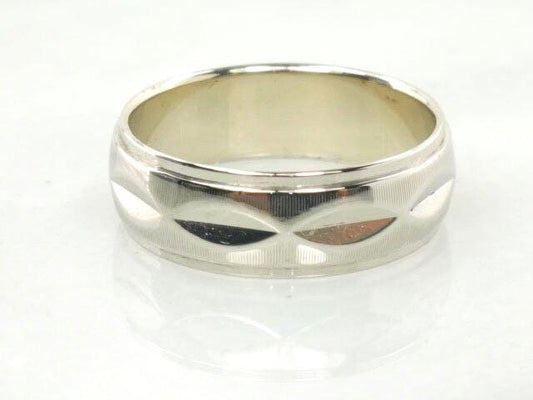 Vintage 14k White Gold Wedding Band - 6 MM Fancy Design, Size 6