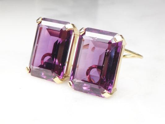 Vintage 14k Large Rectangle Purple Sapphire Earrings with French Clips