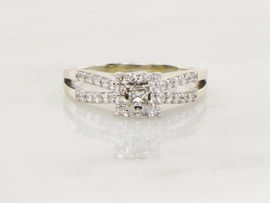Vintage 14k White Gold Princess Cut Diamond Halo Engagement Ring, Size 9