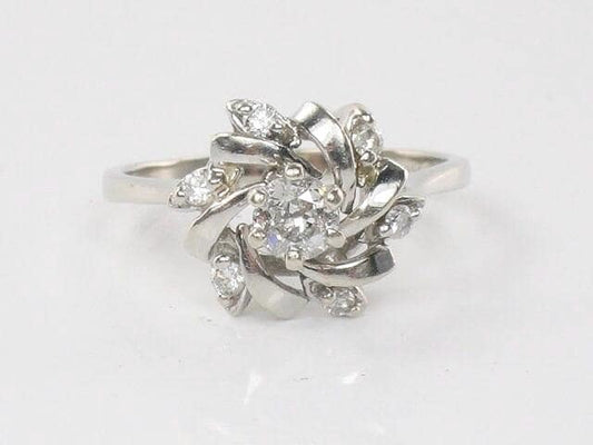 Vintage 14k White Gold Old Mine Cut Diamond Swirl Ring