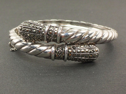 Vintage Sterling Silver Marcasite Snake Bangle Bracelet - 6.5"