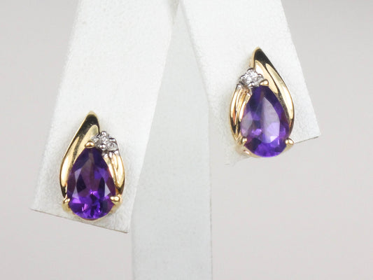 Vintage 14k Gold Amethyst Diamond Teardrop Stud Earrings