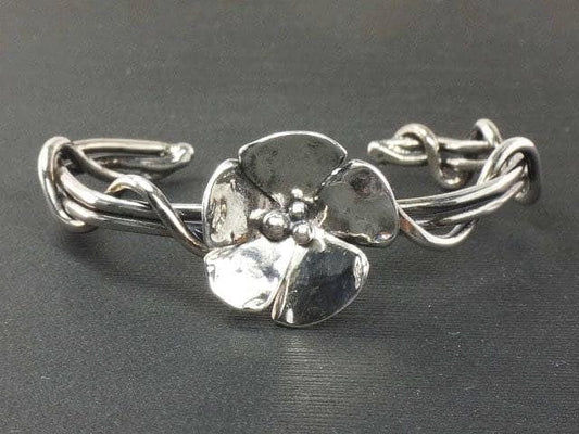 Vintage Sterling Silver Floral Cuff Bracelet Signed Dogwood Flower Twist Bracelet