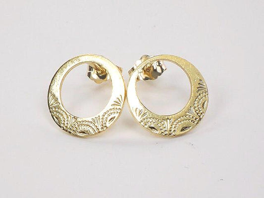 Vintage 18k Gold Circle Stud Earrings: Engraved Solid Gold Discs
