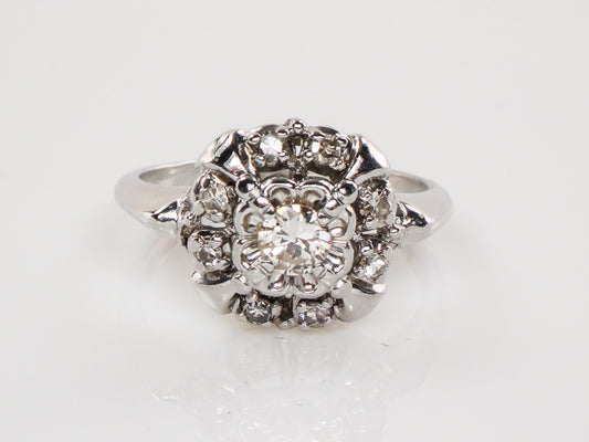 Vintage 14k White Gold Diamond Halo Engagement Ring, 1/3 Carat TDW Cluster Style, Size 5.75