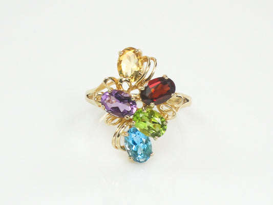 Vintage 10k Multi Color Gemstone Ring with Natural Garnet Peridot Topaz Amethyst and Citrine Size 9.5