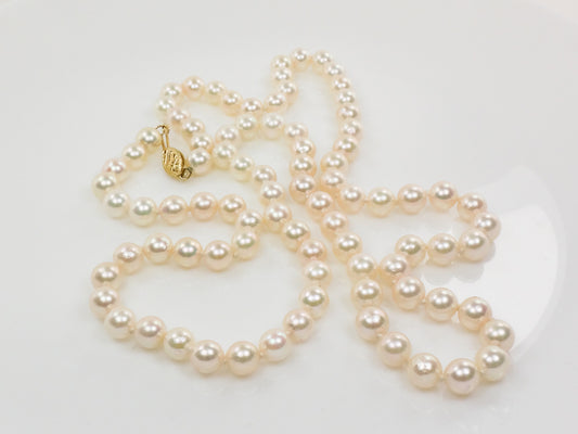 Vintage 14k Yellow Gold Cultured Pearl Necklace, 6.0 - 6.4 mm Strand of Pearls, Bridal Necklace 24"