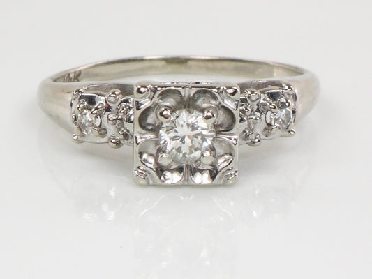 Vintage 14k White Gold Round Diamond Engagement Ring: Circa 1950's, Size 5