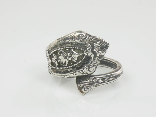 Vintage Wallace Rose Point Sterling Silver Spoon Ring with Floral Design