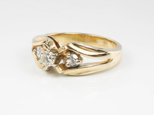 Vintage 14k Yellow Gold Three Natural Round Diamonds Engagement Ring or Everyday Ring