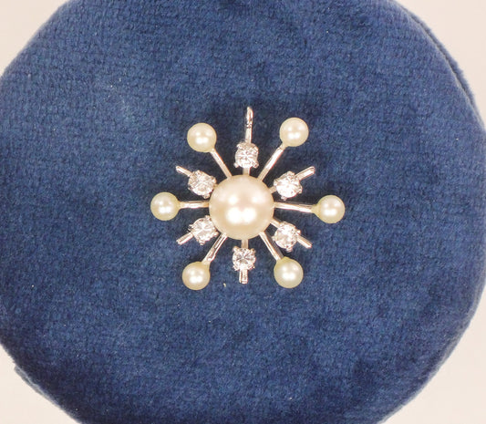 Vintage 14k White Gold Pearl Quartz Starburst Pendant - Engel Brothers