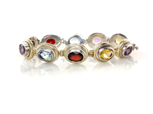 Vintage Multi-Stone Bracelet: 14k Gold & Sterling Silver - Citrine, Amethyst, Topaz, Garnet