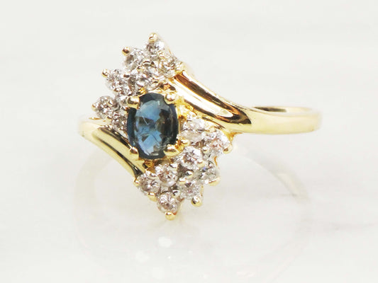 Vintage 14k Natural Blue Sapphire Diamond Ring, Oval September Birthstone Ring Size 8