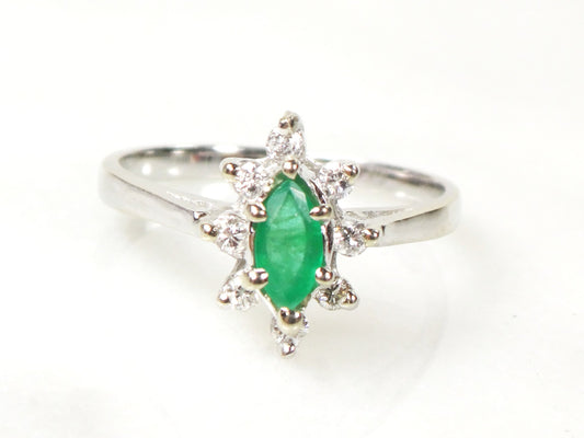 Vintage Sterling Silver Marquise Cut Green Stone Ring 6.5
