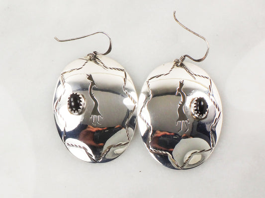 Vintage Sterling Silver Kokopelli Earrings: Black Onyx Southwestern Dangles