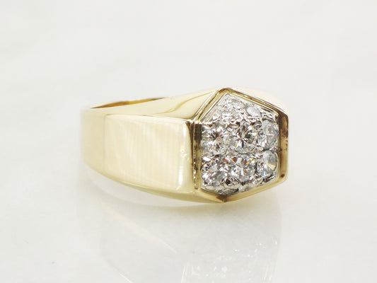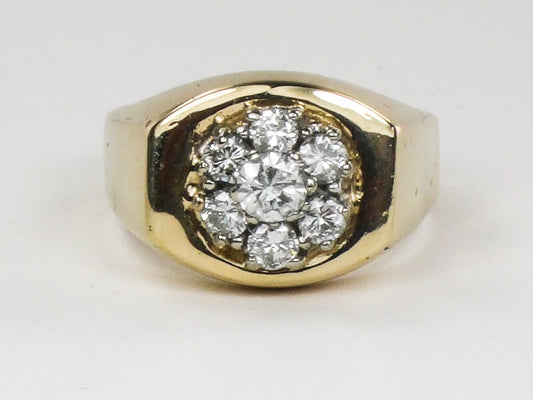 Vintage Men's 14k Yellow Gold Natural Diamond Cluster Ring: 1.0 CT TDW