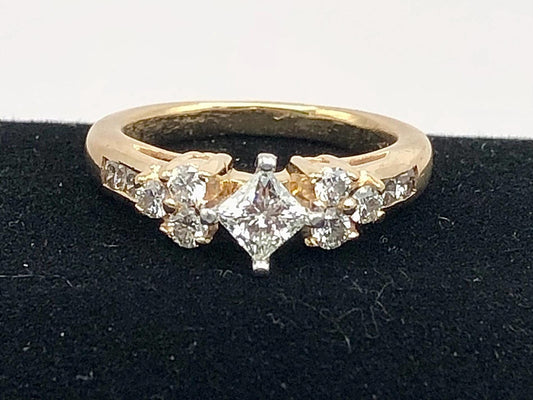 Vintage 14k Two Tone Gold Princess Cut Diamond Engagement Ring, 1.00 CTS, Size 6.25