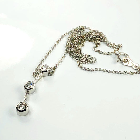 Vintage Carelle 18k White Gold Three Diamond Drop Necklace Approx. 1/2 Carat 16"