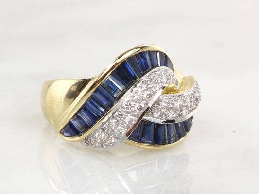 Vintage LeVian 18k Gold Sapphire Diamond Ring - Size 6.5
