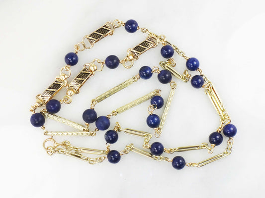 Vintage 14k Yellow Gold Lapis Lazuli Station Necklace - 26.75"
