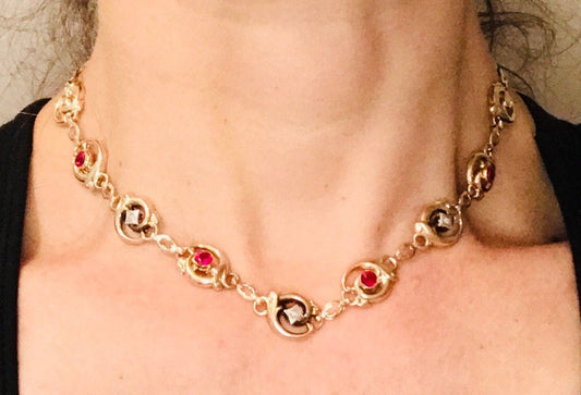 Vintage Esemco 10k Gold Ruby & Diamond Choker Necklace (15.25")