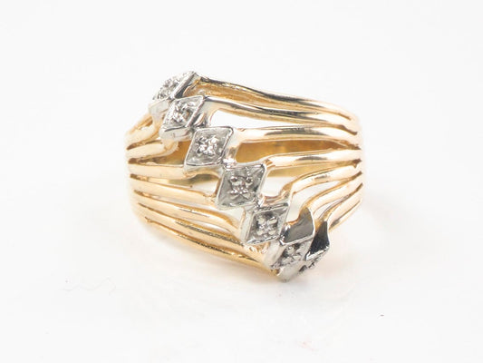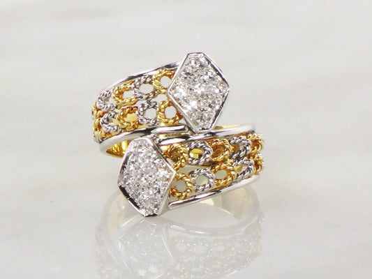 Vintage 18k Gold Diamond Ring: Two Tone Wide Band, Size 8.25