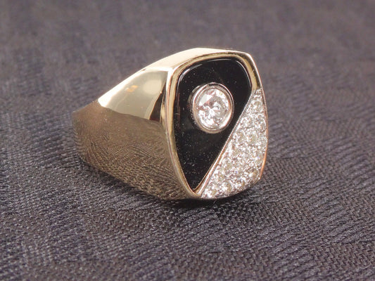 Vintage Men's 14k Yellow Gold Onyx Diamond Ring - Size 9.5