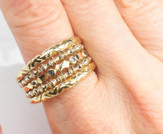 18k Yellow Gold Blue Sapphire Cigar Band Ring - Wide Stacking Multi-Band Style - Size 11.5 - Vintage Fine Jewelry