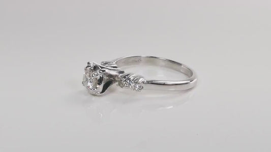 14k White Gold Natural Diamond Engagement Ring Vintage Round Brilliant Cut .25 Carat Center