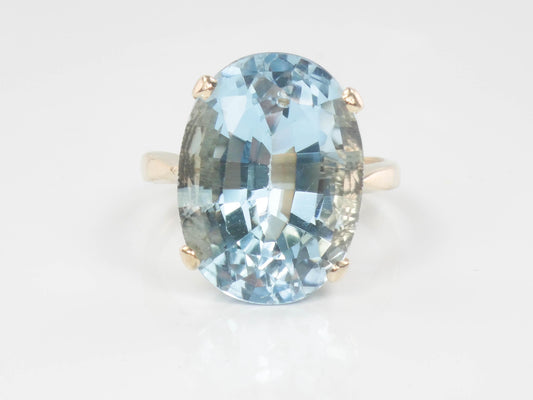 Vintage 14k Yellow Gold Oval Blue Topaz Ring, December Birthstone Ring Size 4